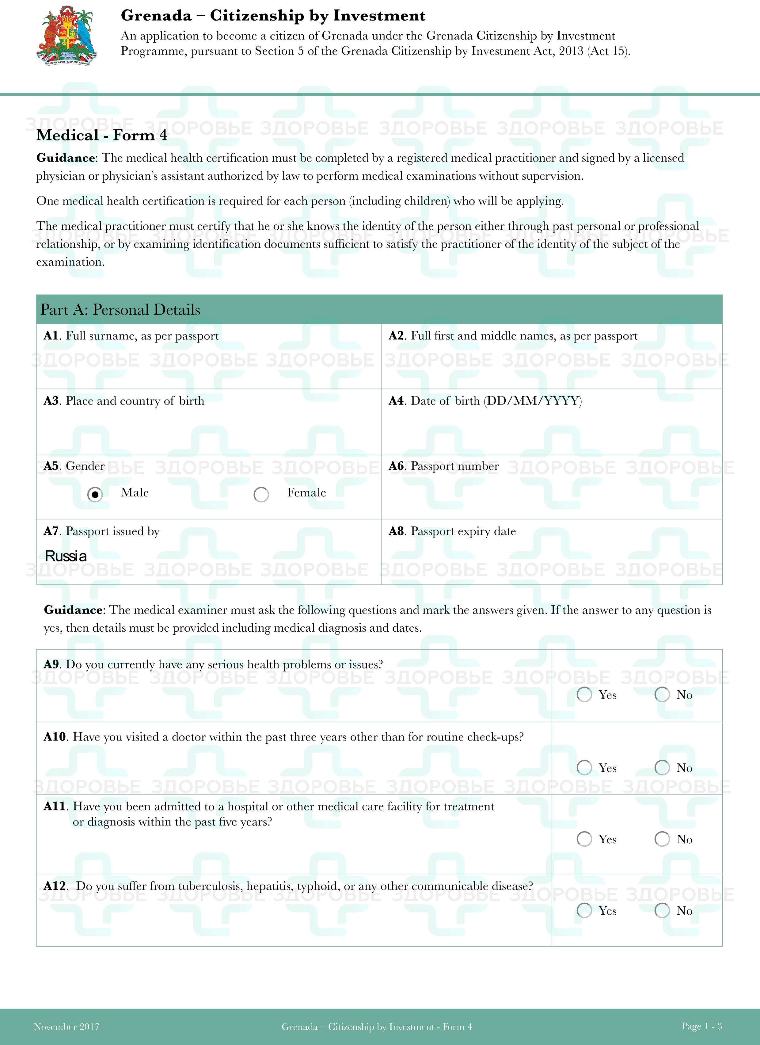 Grenada - Citizenship by Investment Medical Form 4 - медицинская справка для выезда в Гренаду